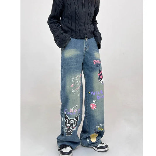 Sanrio Kuromi Graffiti Retro Wide Leg Jeans