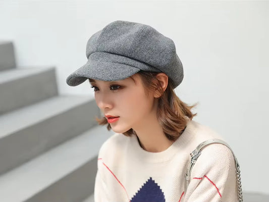 Stylish Wool Blend Herringbone Casual Newsboy Flat Cap