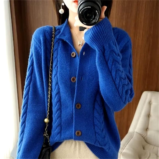 Long Mink-Like Wool Cardigan Thick Mid-Length