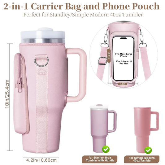 Carrier Bag with Pouch for Stanley Tumbler with Handle & Adjustable Shoulder Strap