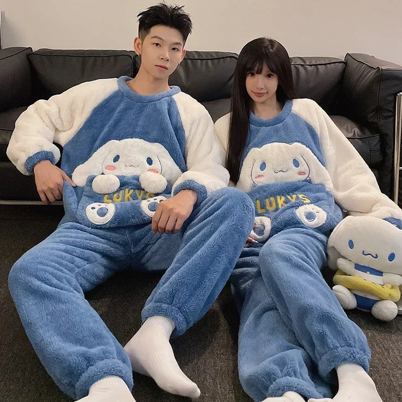 Why settle for ordinary loungewear when you can have something that makes you smile? Our Cozy Sanrio Pacha Dog Fleece Pajamas are designed to provide a plush, cute solution to chilly evenings. With their thick coral fleece fabric, they make sure warmth envelopes you, while the adorable design keeps your spirits high. Whether you're snuggled on the couch or getting ready for bed, they're the perfect pair for you and your partner to enjoy relaxed, loving moments.