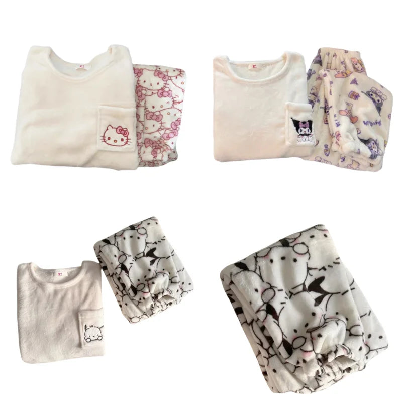 Our Hello Kitty Cozy Flannel Pajamas are the perfect solution to your winter woes. Made from premium flannel, these pajamas offer super soft comfort and warmth. With a sweet, adorable cartoon design, you’ll be stylish even when lounging at home. Plus, the thickened velvet ensures you stay toasty on the coldest nights.